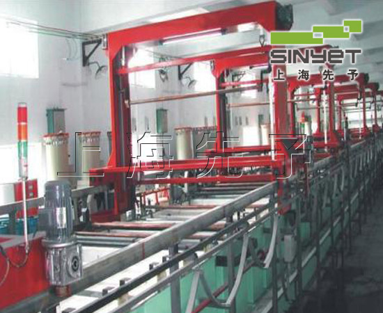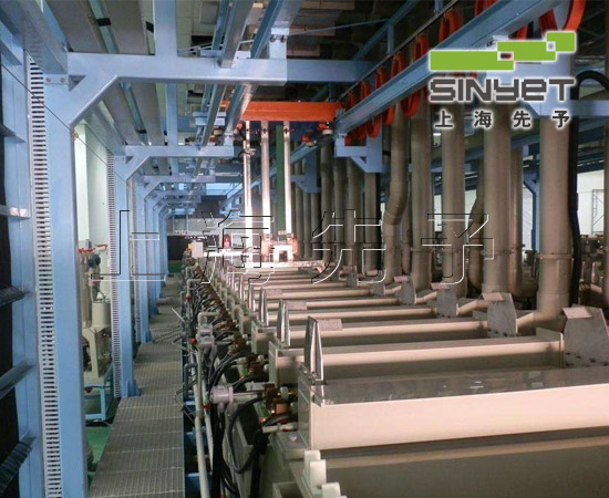 功能全自動電鍍生產(chǎn)線是按一定電鍍工藝過程要求將有關(guān)鍍槽、鍍件提升傳運裝置、電器控制裝置、電源設(shè)備、過濾設(shè)備、檢測儀器、加熱與冷卻裝置、空氣攪拌設(shè)備等組合為一體,通過機(jī)械和電氣裝置自動完成電鍍工序要求的全部過程,生產(chǎn)效率高,產(chǎn)品質(zhì)量穩(wěn)定。