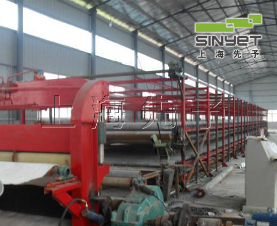 工藝一、抄取機。作用:把原漿中的水份分離并同時把漿料送到打布器脫水,然后成坯; 二、打布器。作用:用于漿料再次脫去多余水份,同時把脫料后毛布表面的雜質清洗掉; 三、成坯機。作用:把從成坯機上脫下來的毛坯瓦送至直壓機; 四、接坯機。作用:把從成坯機上脫下來的毛坯瓦送至直壓機; 五、直壓機。作用:把石棉瓦毛坯壓制成型; 六、扣壓機。作用:把壓制成型后的石棉瓦加壓成型; 七、切邊機。作用:要據(jù)客戶需求把成型后的瓦毛邊切去; 八、吸瓦機。作用:把制作后的瓦堆起來; 九、攪拌機。作用:把按比例配好的原料加水后充分攪拌; 十、風機。作用:和吸瓦機配合,給吸瓦機提供氣流; 十一、真空機。作用:和打布 器配合吸干毛布中的水份; 十二、氣水分離。作用:分離水的容器; 十三、輸送機。作用:運輸石棉瓦用長度可制定。