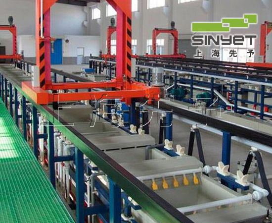 功能全自動電鍍生產(chǎn)線是按一定電鍍工藝過程要求將有關(guān)鍍槽、鍍件提升傳運裝置、電器控制裝置、電源設(shè)備、過濾設(shè)備、檢測儀器、加熱與冷卻裝置、空氣攪拌設(shè)備等組合為一體,通過機(jī)械和電氣裝置自動完成電鍍工序要求的全部過程,生產(chǎn)效率高,產(chǎn)品質(zhì)量穩(wěn)定。